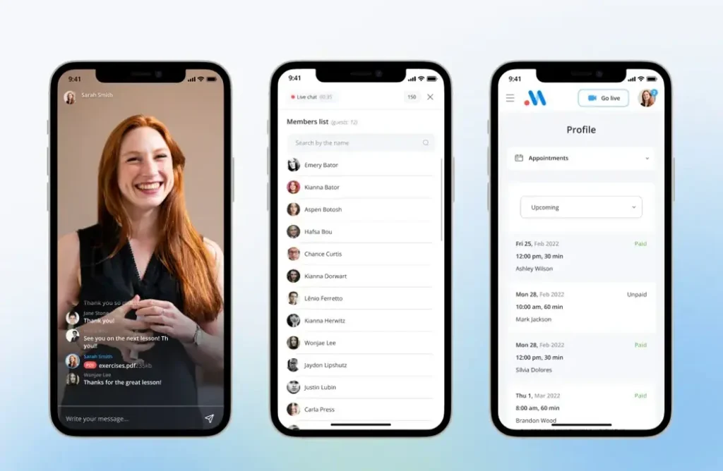 An app should allow seamless payment processing. Your app should allow users to subscribe, make in-app purchases, or pay one-time payments to help accommodate all users. Automated membership management, tracking active users, and automatic renewals will allow you to focus on coaching rather than handling administrative tasks.